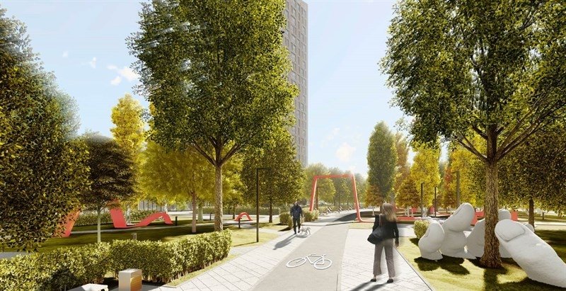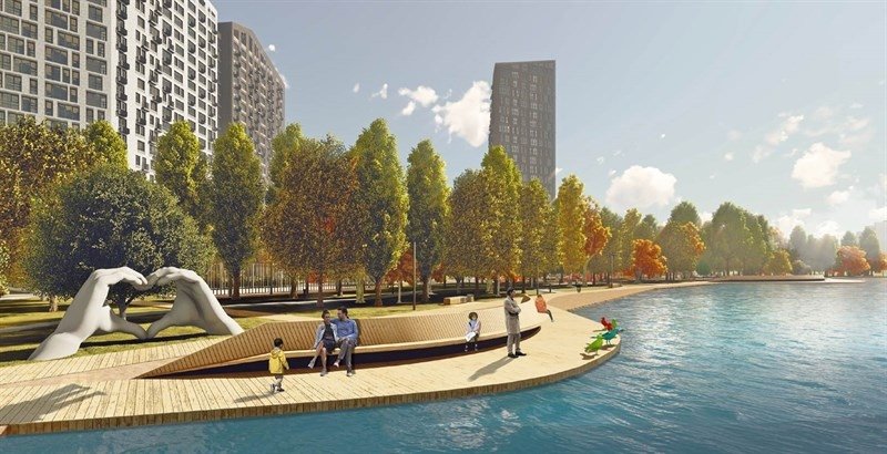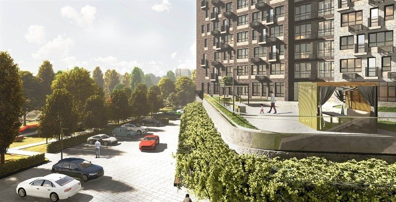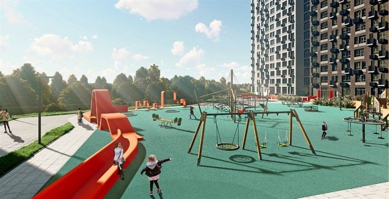 Закрытое от машин и посторонних пространство, поднятое над уровнем земли. Включает ландшафтный дизайн, зоны для йоги, дизайнерские детские площадки и зоны отдыха с уличной мебелью.