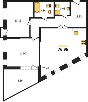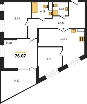 Площадь от 76.07 м2